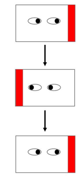 With eyes open, sweep your focused attention horizontally from side to side fixating on the vertical red bars. As you sweep the laser beam of your gaze back and forth you feel calm and in control.